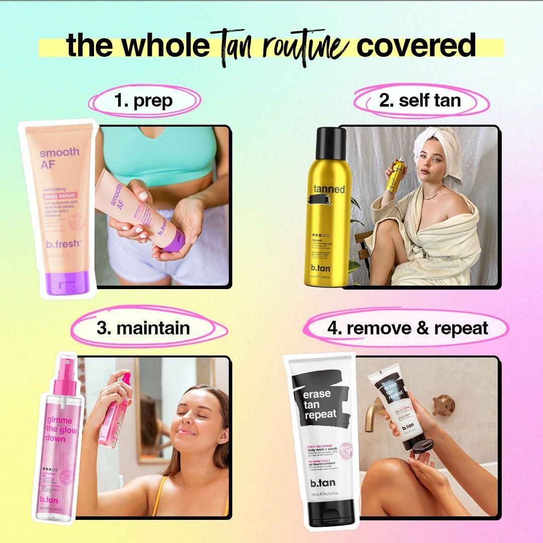 b.tan Large Violet Base Self Tanner Mousse | A Little Extra Love At First Tan – 1 Hour Express Sunless Tanning Foam, Cancels Orange Tones, Dark Bronze Glow, No Fake Tan Smell, Face & Body, 10.1 Fl Oz(get tanned bronzing mist)